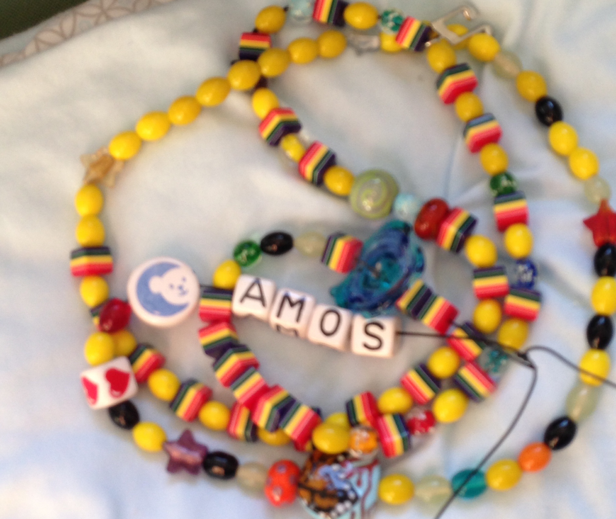 Here’s a picture of a recent activity that Amos and I did together. These are his beads of courage- each one marks an event since he’s been in the hospital such as a surgery, pricks, scans, overnight stay, etc. It’s a way of keeping track of this whole story in a visual way and I am thankful for all that the Lord has carried Amos through- with more “beads” being added each day!